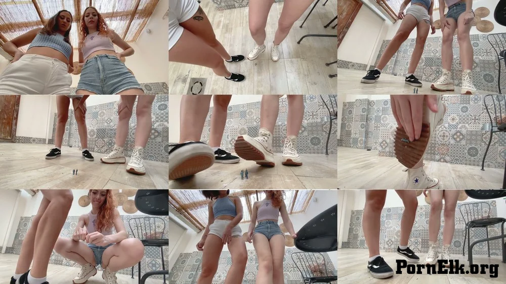 Video Description: We see a bunch of businessmen doing a reunion. They can't even see us, they're so small we are just part of the background for them, if we spit they think its rain instead of two giantesses. We get angry at them and end up crushing them and destroying them, splitting them in half while we are