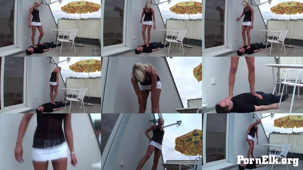 Video Description: Princess Paris tramples her slave bobby through on the terrace with naked feet of the entrails.