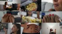 Video Description: No much talking in this one, but lots of eating. Enola's goal is to sit down and put her giant feet up. Watch tv. You know? Relax. So does it bother her when she realizes there are tiny people IN her bowl of popcorn?Not at all. In fact, the more the merrier. She eats, squishes and stomps these